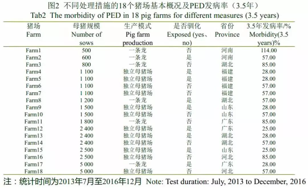 场间对比:后备猪经过PEDV驯化的猪场3.5年内发病率为33.78%,明显低于未经过驯