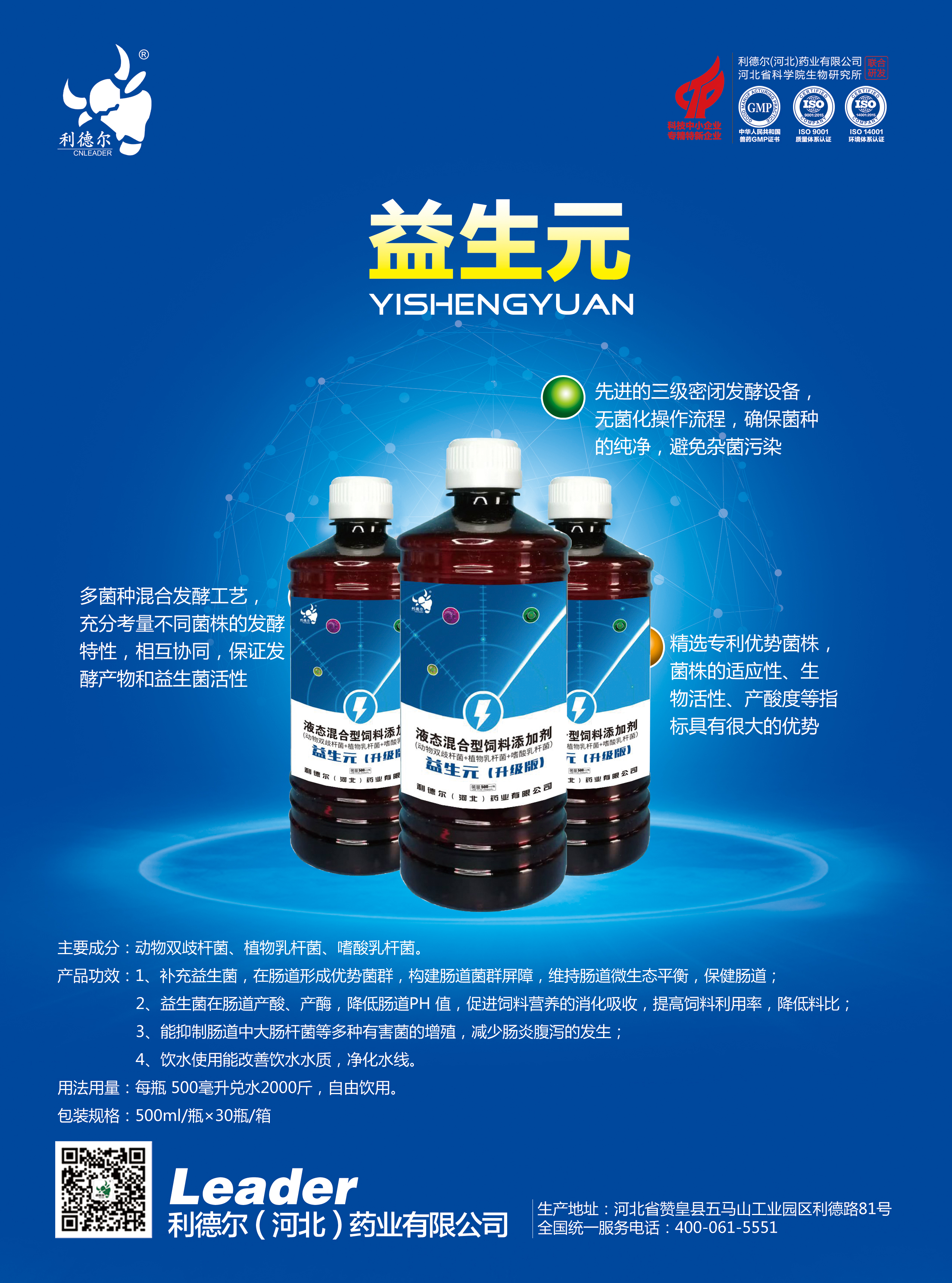 - 益生元:每克含植物乳杆菌≥1.0×10⁹ CFU、动物双歧杆菌≥1.0×10⁹ CFU、嗜酸乳杆菌≥5.0×10⁸ CFU、酵母菌≥5.0×10⁸ CFU。