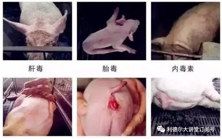胎毒:特定的内毒素经血液循环进入胎盘,导致胎儿器官先天性损伤,可引起流产、死胎、弱仔、仔猪八字腿、阴户红肿、高死亡奶猪腹泻等。