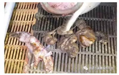 这个猪场是新建猪场,5月初新母猪开始产仔,第一头母猪顺利产下16头小猪,接下来的10头母猪就不怎么好了,每一头都有木乃伊胎,有的多有的少,活仔少的可怜,不超过6头。有几头母猪还早产,产下来的活小猪到最后全部死亡。