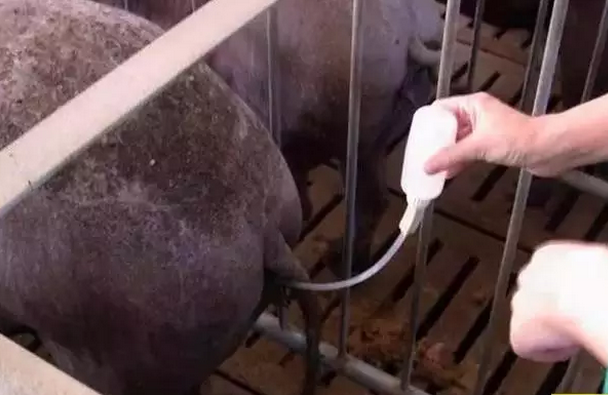规模猪场一般都采用两到三次输精法,二次输精间隔大多在12小时,初次配种的母猪一般进行第三次。