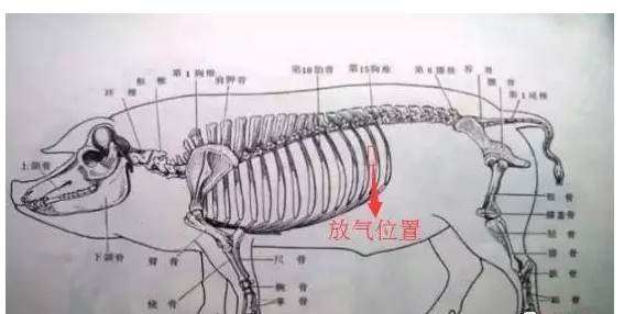 2、胀气很明显的治疗,在病猪左侧倒数第二三肋骨间,与背部平行位置用长针头扎入放气,等到猪肚子小后在放气的位置推注10%林可霉素(每公斤体重0.1毫升)和10%丁胺卡那(每公斤体重0.1毫升),甲硝唑和碳酸氢钠静脉滴注。