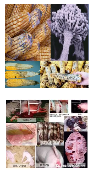 如果在一个猪场同时出现以下几种或所有的症状,可以确诊为霉菌毒素中毒,并结合饲料检查和治疗从而最终确诊。