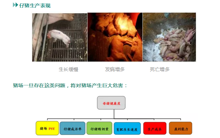 针对大多数猪场普遍存在的免疫抑制和毒素蓄积问题,猪场可通过母猪、仔猪的外观和生产表现来进行评估: