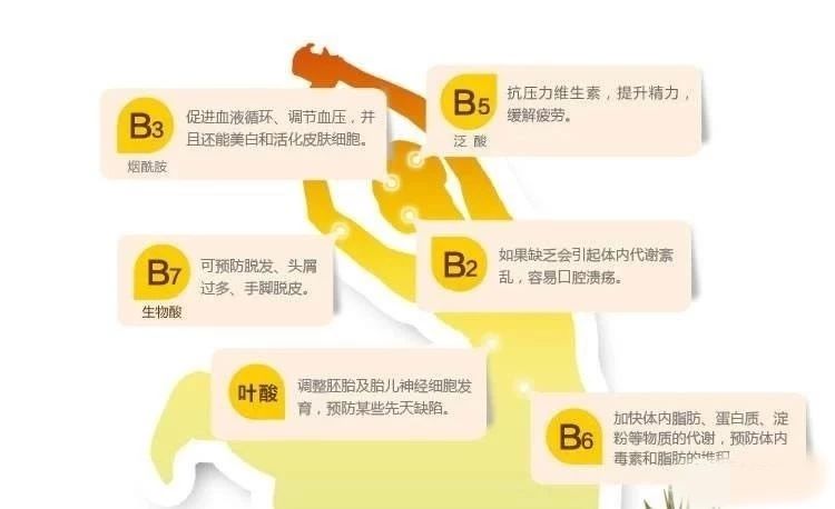 B族维生素就像体内的“油库”,它能加速物质代谢,让它们转化成能量,不仅能给肝脏“加油”,还能修复肝功能、防止肝脂肪变性,进而起到预防脂肪肝的作用。提高肝脏内的酶活性,有助于肝细胞蛋白质的合成,加速肝组织再生,增加肝脏解毒能力。减轻中毒性肝损伤的物质代谢障碍,升高肝糖原、减轻肝细胞变性、减轻中毒致病因子对肝细胞线粒体和溶酶体的破坏。由于B族维生素能溶解在水里,在体内滞留的时间只有几个小时,因此必须每天补充。