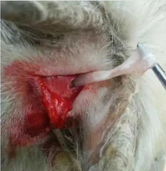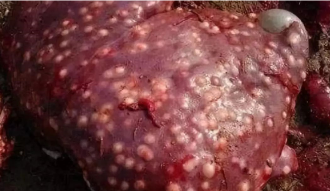 细颈囊尾蚴在猪感染较普遍,牧区绵羊感染严重,牛较少。对羔羊、仔猪等危害严重,羔羊表现不安,流涎,不食,腹泻和腹痛等症状,可能已死亡告终。羊生前诊断比较困难,一般在死后解剖发现。呈囊泡状,黄豆大或鸡蛋大,囊壁乳白色。