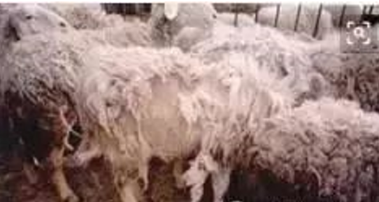 牛、 羊皮肤一块一块的脱毛,形成浅黄色痂皮,如轻轻揭开,则在皮肤相连端痂皮下可见许多黄白色痒螨在爬动。