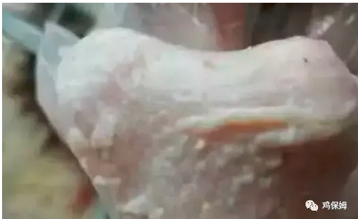 鸡的食道中间部有膨大球形的嗉囊,嗉囊弹性很大,主要作用是贮存饲料,并分泌黏液以湿润和软化饲料,嗉囊可根据需要有节奏地把食物送进胃里。有的时候发生病变,嗉囊肿大,跟气球一样,如果解剖翻过来后,嗉囊表面会有一层刷状的白色念球菌。